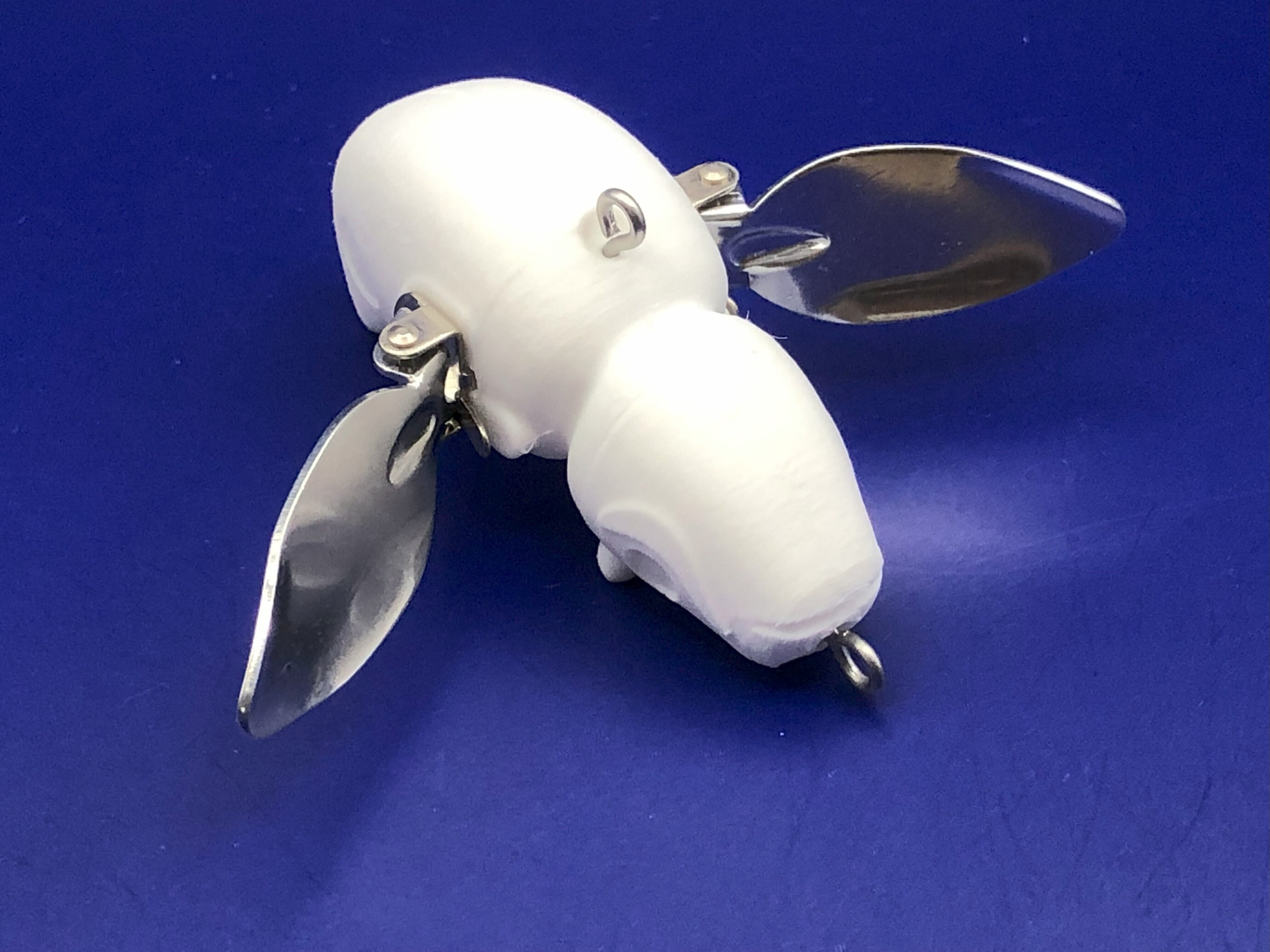 ・羽根アクションによる水面引き波で強烈にアピール